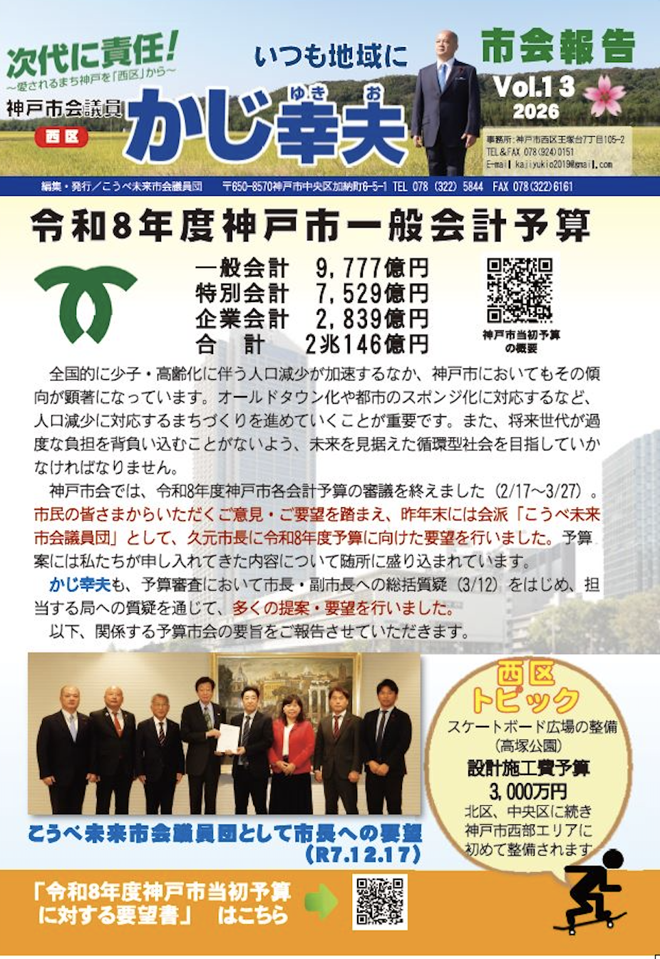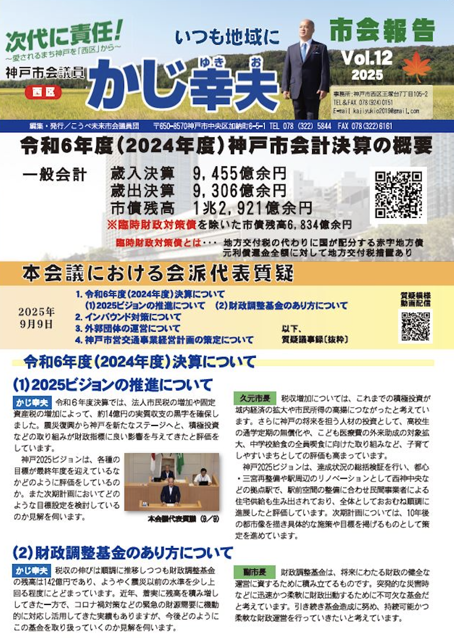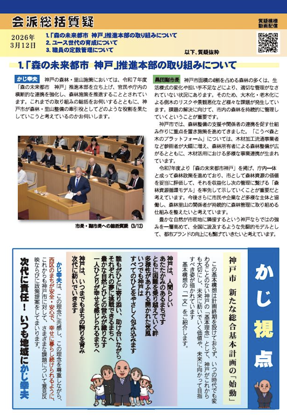 また、ポストコロナを見据えた神戸観光の推進、都心三宮・ウォーターフロントの再整備など神戸のまちづくり、そして特に子育て支援やこども・若者ケアラーへの支援、フレイル予防の推進など、会派として求めた「人」への投資についても予算が確保されています。